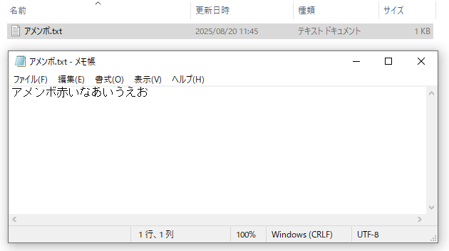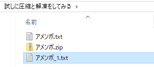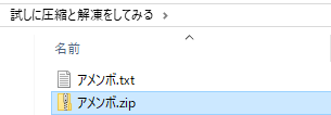 アメンボ.txtと同じディレクトリに圧縮ファイル「アメンボ.zip」が作成されました。