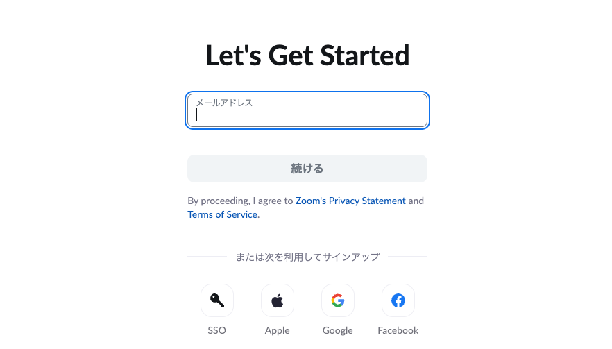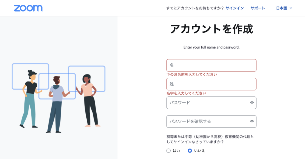2. ダウンロードが完了したら、Zoomアプリを起動し、必要項目を入力してサインアップ。