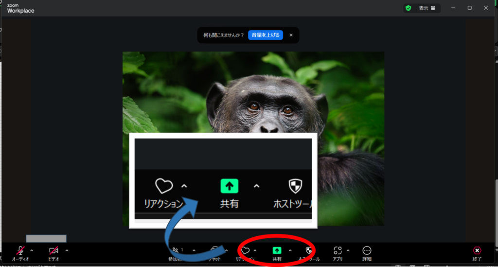 ※画面全体は、PC上の操作全てが共有されるが、アプリケーションウィンドは、指定したウィンドウのみを共有する仕様となっている為、場面に応じて使い分けよう。
