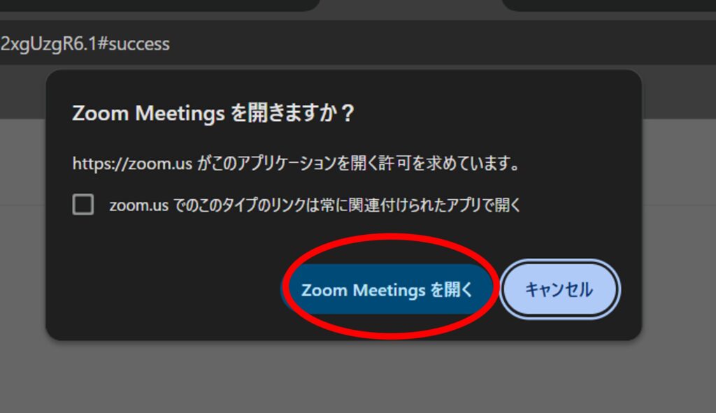 ※確認画面が出る場合は、「Zoom Meetingを開く」を選択。アプリに自動で切り替わる。