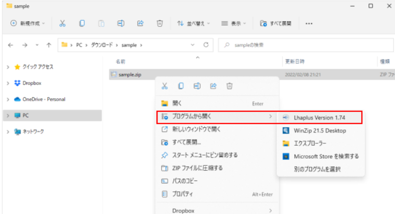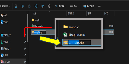 Lhaplus(ラプラス)で圧縮・解凍できない圧縮ファイルの型式があった場合、圧縮ファイルの拡張子「.●●●」の部分を変更し、Lhaplus(ラプラス)で対応可能にする事ができる。