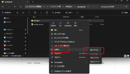 - 「圧縮」か「その他オプション」から「.zip(.zipファイル)」などを選択