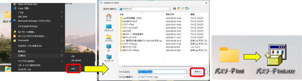 ※今回は「パスワードTEST」というフォルダへ - 「パスワードTEST」を右クリック。「オプション」→「圧縮」→「.zip(pass)」を選択